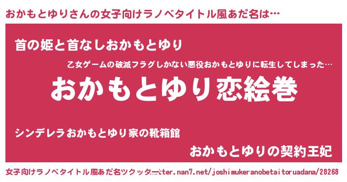 | 男性向けラノベタイトル風あだ名 | 『ノーゲーム・ノーオカモトユリ』 |