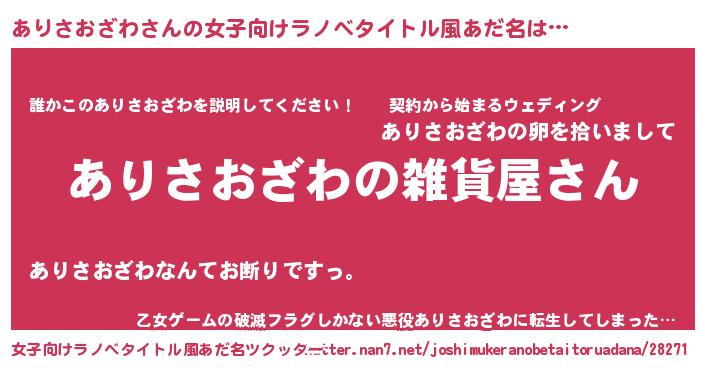| 男性向けラノベタイトル風あだ名 | 『やはりありさおざわの青春ラブコメはまちがっている 』 |