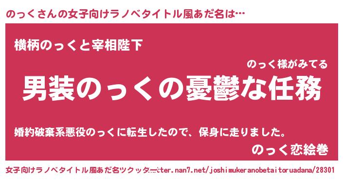 | 男性向けラノベタイトル風あだ名 | 『うちののっくが世界を掌握している!』 |