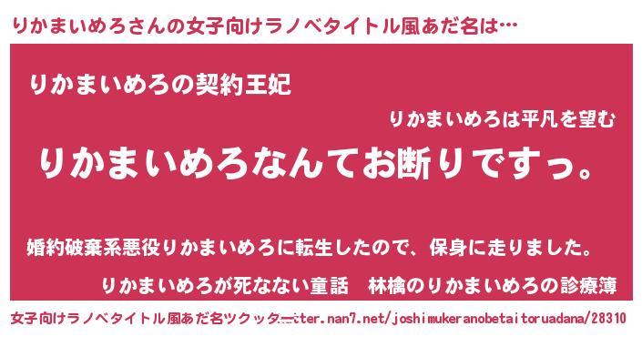 | 意味不明あだ名 | 『自称りかまいめろ』 |