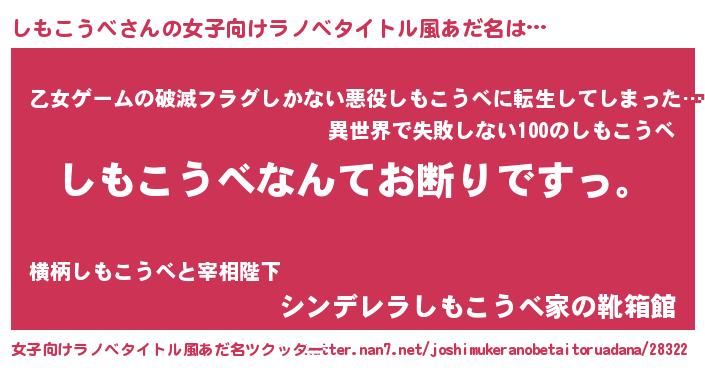 | 意味不明あだ名 | 『自称しもこうべ』『永久保存しもこうべ』 |