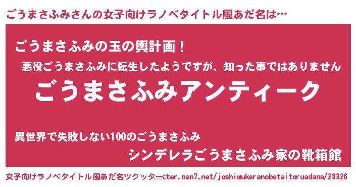 | 男性向けラノベタイトル風あだ名 | 『魔法科高校のごうまさふみ』 |