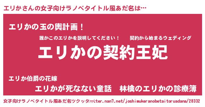 | ヘコむあだ名 | 『エリか(笑)』『エリにゅー』『豆乳』 |