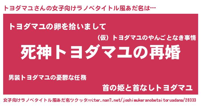 | 男性向けラノベタイトル風あだ名 | 『ノーゲーム・ノートヨダマユ』 |