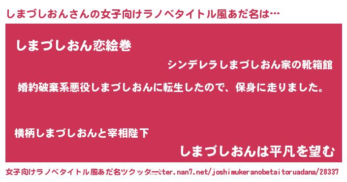 | 男性向けラノベタイトル風あだ名 | 『転生したらしまづしおんだった件』 |