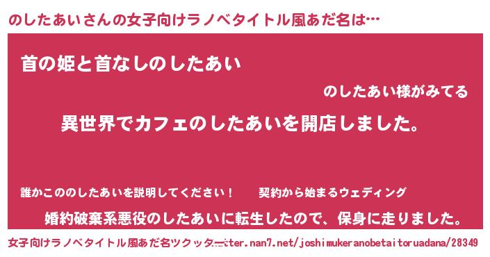 | 男性向けラノベタイトル風あだ名 | 『誰もが恐れるあののしたあいが、ぼくの専属メイドになるようです。』 |
