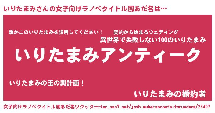 | 意味不明あだ名 | 『自称いりたまみ』『ペロリンいりたまみ』 |