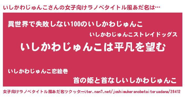 | 男性向けラノベタイトル風あだ名 | 『ダンジョンにいしかわじゅんこを求めるのは間違っているだろうか』 |