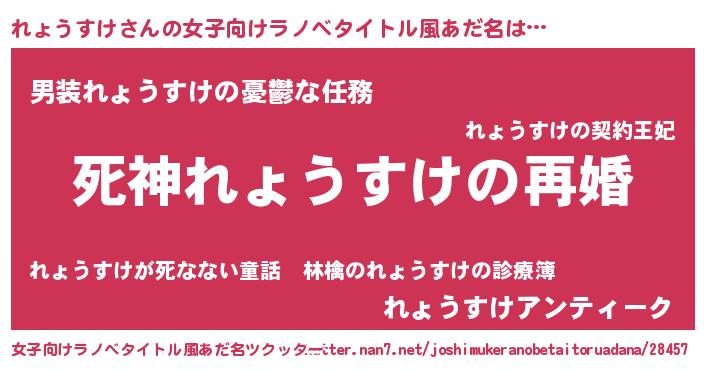 | 男性向けラノベタイトル風あだ名 | 『ノーゲーム・ノーレョウスケ』 |