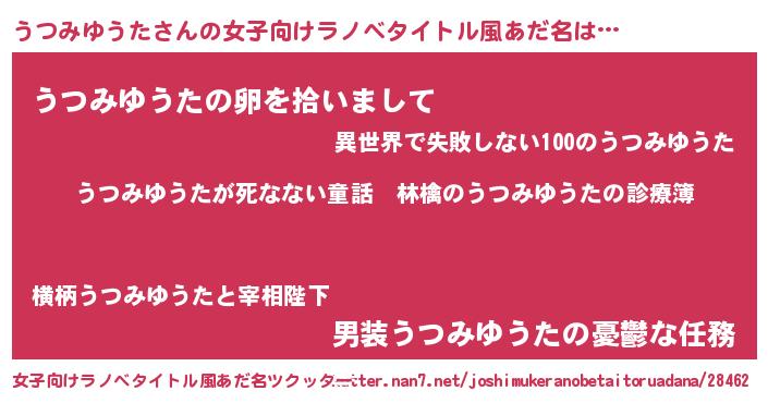 | 意味不明あだ名 | 『住所不定無職うつみゆうた(93歳)』 |