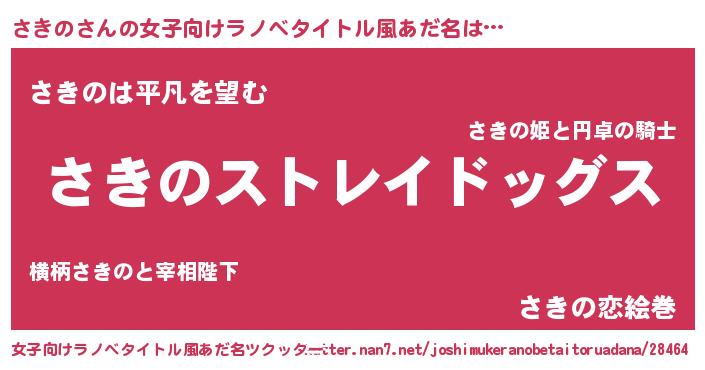| 男性向けラノベタイトル風あだ名 | 『Re:さきのから始める異世界生活』 |