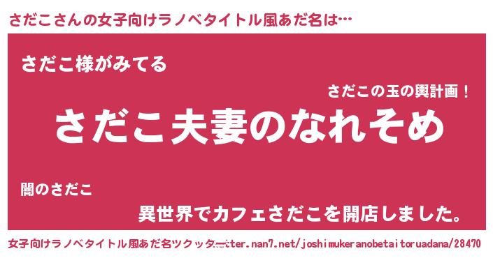 | 男性向けラノベタイトル風あだ名 | 『おまえをオタクにしてやるから、俺をさだこにしてくれ! 』 |
