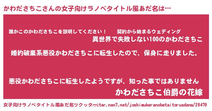 | 男性向けラノベタイトル風あだ名 | 『カワダサチコスレイヤー』 |