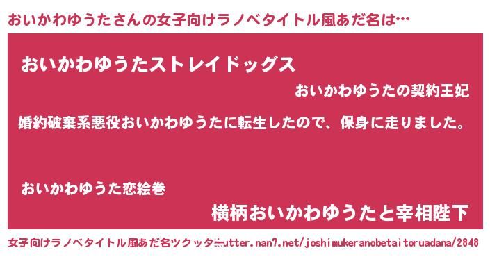| 男性向けラノベタイトル風あだ名 | 『オイカワユウタスレイヤー』 |