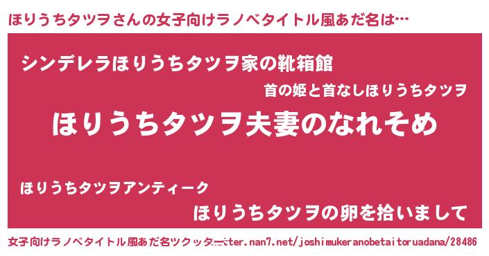 | ヘコむあだ名 | 『ほり太郎』『ほりうちタツヲ(爆)』 |