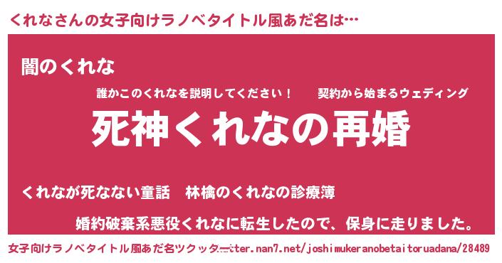 | 男性向けラノベタイトル風あだ名 | 『ノーゲーム・ノークレナ』 |