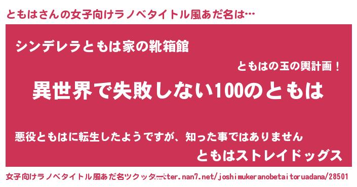 | 男性向けラノベタイトル風あだ名 | 『ともはという概念が存在しない退屈な世界 』 |