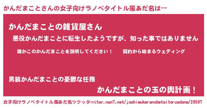 | 胡散臭い通販商品みたいなあだ名 | 『億万長者になれるブレスレット…その名も「かんだまこと」』 |