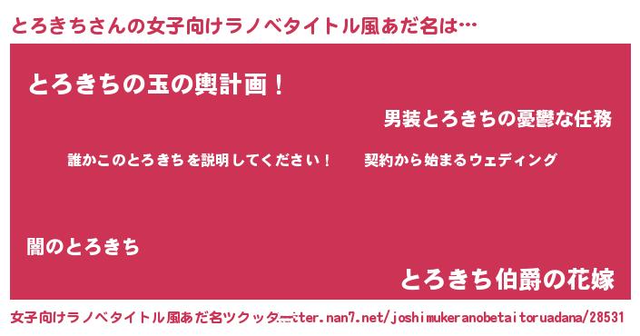 | 胡散臭い通販商品みたいなあだ名 | 『億万長者になれる水晶球…その名も「とろきち」』 |
