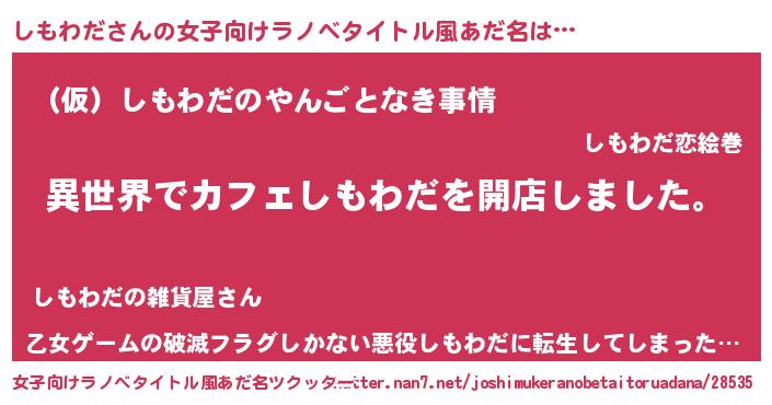 | ヘコむあだ名 | 『しもわだ(小並感)』『しもっふぃ~』 |