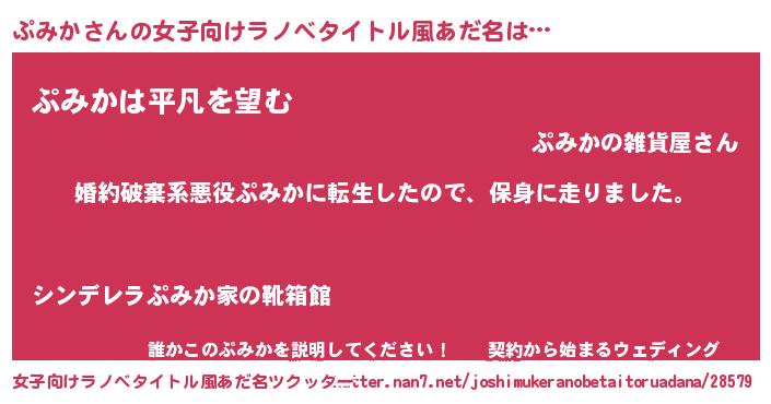 | 胡散臭い通販商品みたいなあだ名 | 『信頼と実績のサプリメント…その名も「ぷみか」』 |