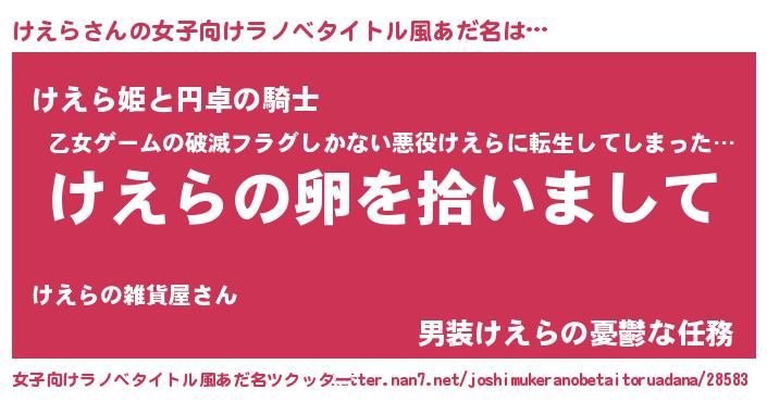 | 胡散臭い通販商品みたいなあだ名 | 『伝統あるネックレス…その名も「けえら」』 |