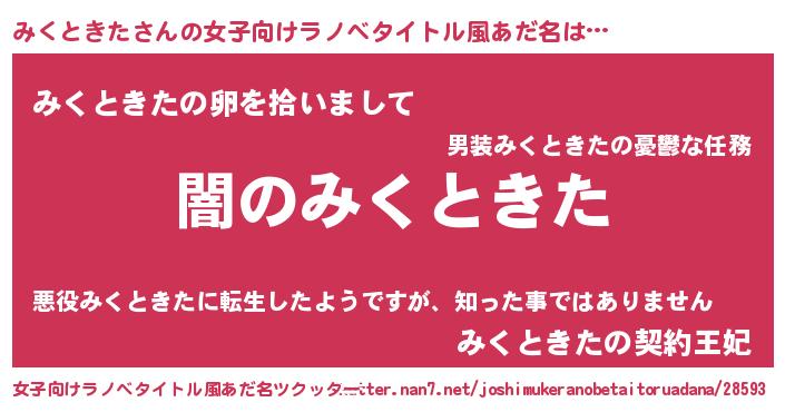| 男性向けラノベタイトル風あだ名 | 『Re:みくときたから始める異世界生活』 |