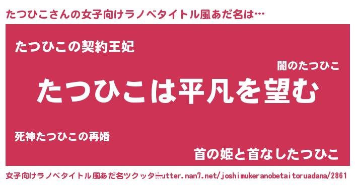 | 男性向けラノベタイトル風あだ名 | 『ダンジョンにたつひこを求めるのは間違っているだろうか』 |