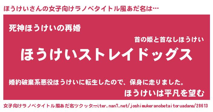 | ヒーロー風カッコイイあだ名 | 『究極戦士ホウケイ』『暗黒騎士ホウ』 |