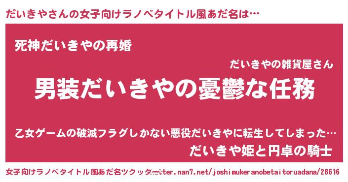 | ヘコむあだ名 | 『だいにゅー』『酢こんぶ』『だいお』 |