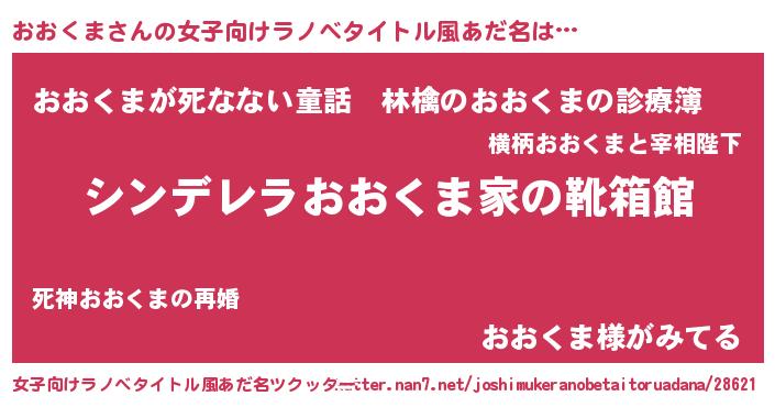 | 男性向けラノベタイトル風あだ名 | 『緋弾のオオクマ』『魔弾の王とおおくま』 |
