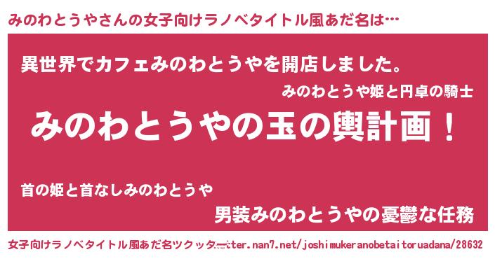 | 胡散臭い通販商品みたいなあだ名 | 『来世でも幸せになれる健康食品…その名も「みのわとうや」』 |