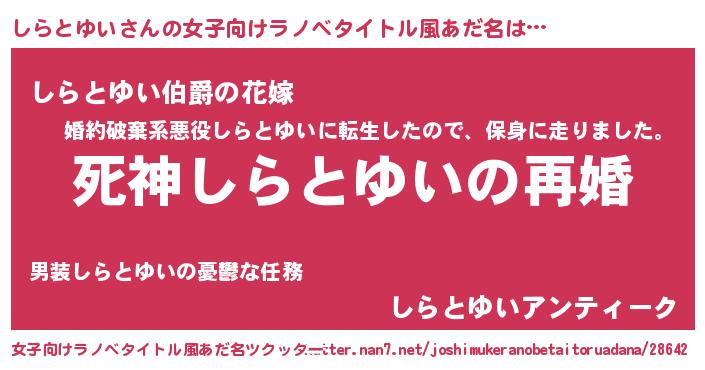 | ヒーロー風カッコイイあだ名 | 『慈愛の使者しらとゆい』『仮面シラダー』 |