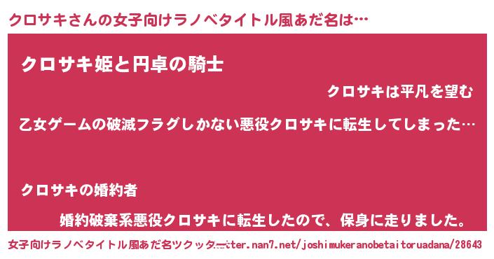 | 意味不明あだ名 | 『住所不定無職クロサキ(9歳)』 |