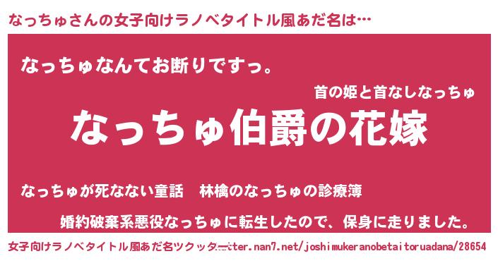 | 男性向けラノベタイトル風あだ名 | 『やはりなっちゅの青春ラブコメはまちがっている 』 |