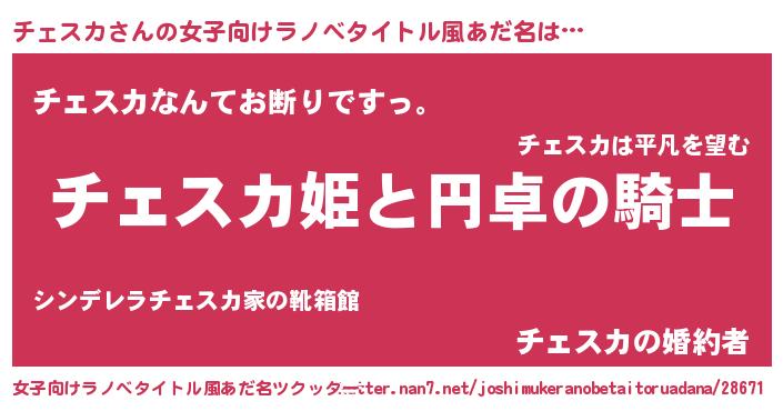 | 胡散臭い通販商品みたいなあだ名 | 『モテモテ間違いなし霊験あらたかなお札…その名も「チェスカ」』 |