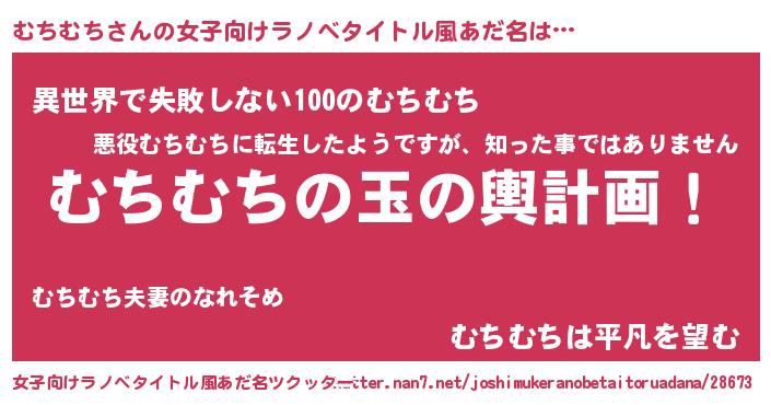 | 男性向けラノベタイトル風あだ名 | 『むちむち~年齢イコール彼女いない歴の魔法使い~』 |