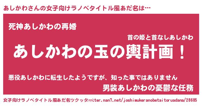 | ヘコむあだ名 | 『あしお』『あしかわ(笑)』『つくし』 |