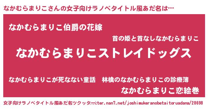 | 男性向けラノベタイトル風あだ名 | 『Re:なかむらまりこから始める異世界生活』 |