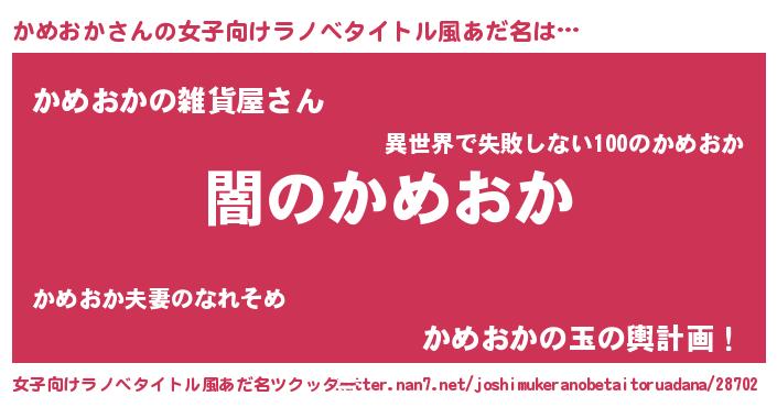 | 男性向けラノベタイトル風あだ名 | 『Re:かめおかから始める異世界生活』 |
