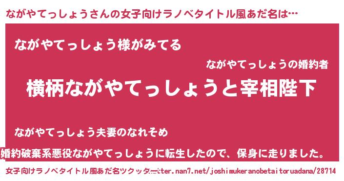 | 男性向けラノベタイトル風あだ名 | 『ながやてっしょうに滅ぼされるだけの簡単なお仕事です』 |