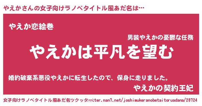 | ヒーロー風カッコイイあだ名 | 『黄金騎士ヤエ』『愛の使者やえか』 |