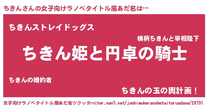 | 男性向けラノベタイトル風あだ名 | 『チキンアートオンライン』 |