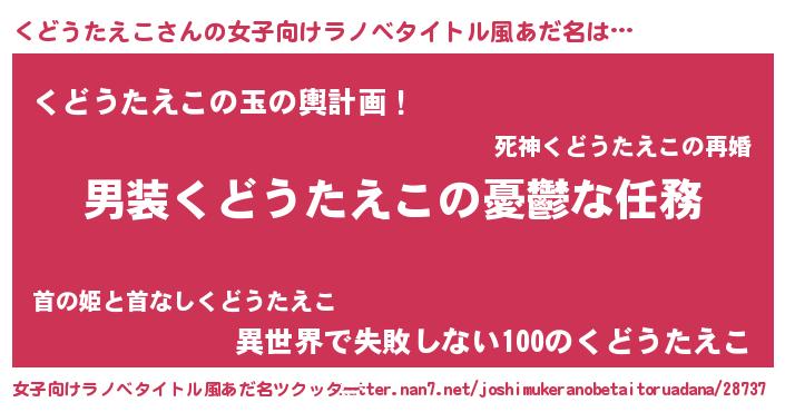 | 胡散臭い通販商品みたいなあだ名 | 『前代未聞の健康食品…その名も「くどうたえこ」』 |