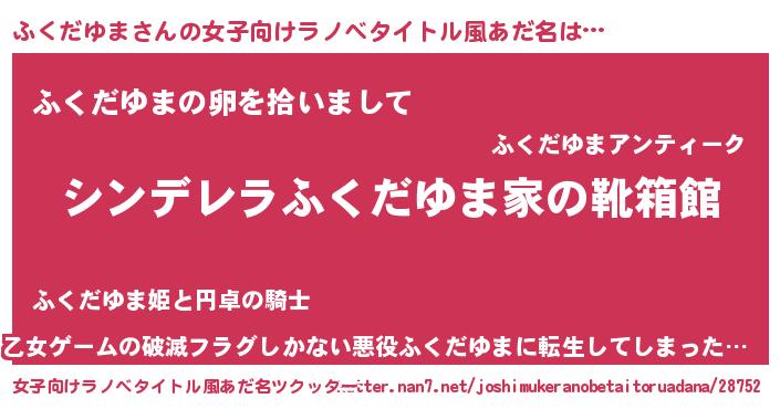 | 男性向けラノベタイトル風あだ名 | 『緋弾のフクダユマ』『ふくだゆまの憂鬱』 |