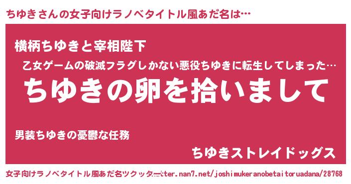 | 意味不明あだ名 | 『とにかく怪しいちゆき』『自称ちゆき』 |