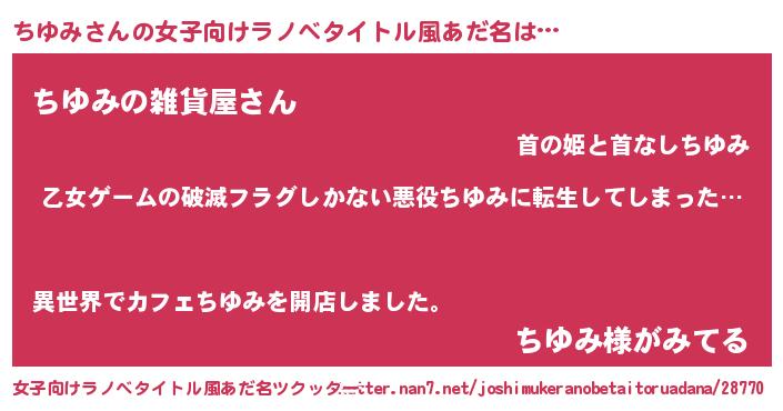 | 意味不明あだ名 | 『住所不定無職ちゆみ(68歳)』 |