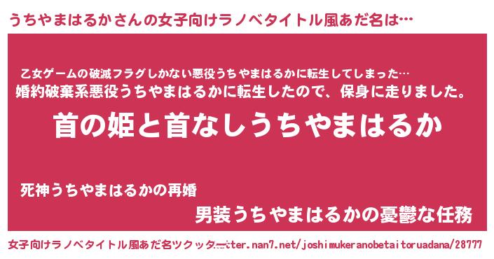 | 男性向けラノベタイトル風あだ名 | 『はたらくうちやまはるかさま!』 |