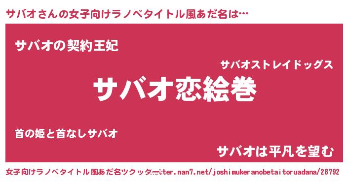| 男性向けラノベタイトル風あだ名 | 『おまえをオタクにしてやるから、俺をサバオにしてくれ! 』 |
