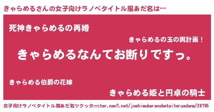 | 意味不明あだ名 | 『自称きゃらめる』『ペロリンきゃらめる』 |
